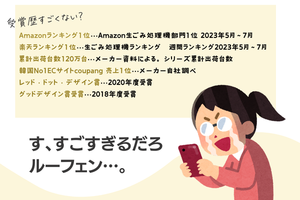 作動中でも追加で生ゴミを投入できるのが一番気に入っています。 野菜や果物の皮などはビックリするほど小さくなります!生ごみのニオイもないので、コバエを見かけなくなりました。 デザインも可愛らしく、コンパクトでおしゃれなところもいいですね!作動中の音もほとんど気にならず買って大正解! 友達が来ると「これどこの?欲しい!」と言われるので嬉しいです! ゴミの削減にも大きく役立っているのが自慢です。(40代/女性)